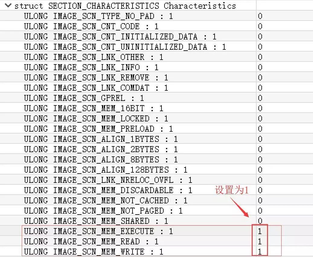 ⑥ 区段属性主要设置区段为可读可写可执行如下图