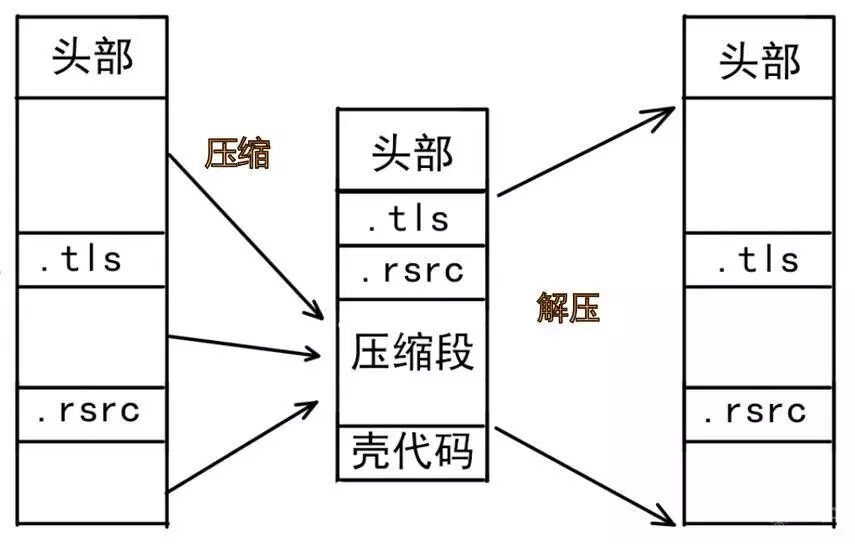 这说一下压缩大概思路,首先不能压缩头部,考虑到后面要处理TLS,还有一个程序的图标在资源段,所以不压缩这两个段。